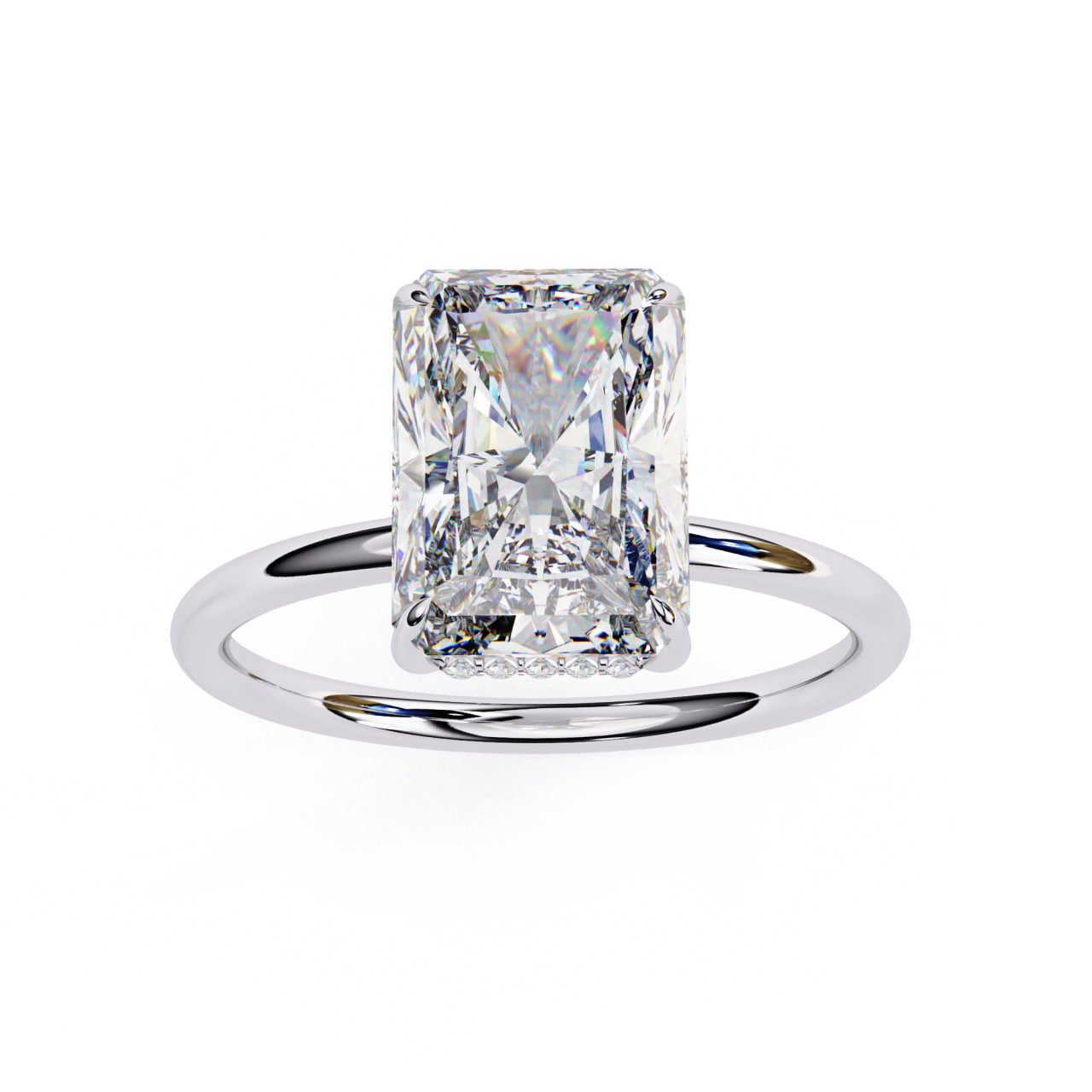 SKU : 084A modern radiant-cut solitaire that blends clean geometry with timeless elegance. The slender polished band draws full attention to the radiant center diamond, maximizing brilliance while keeping the silhouette refined and contemporary. Perfect for those who love a minimal yet statement-making piece.