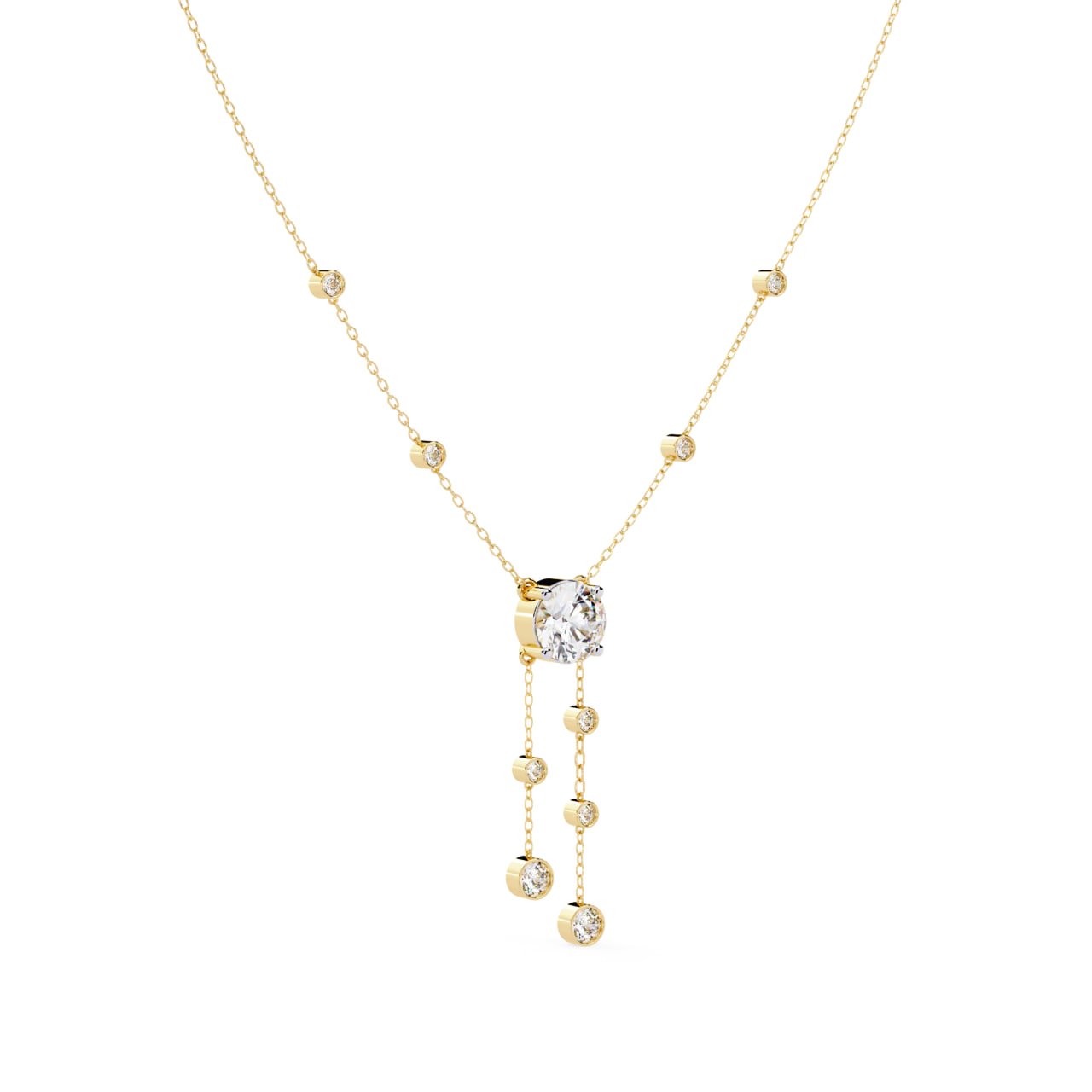 SKU : N012This Classic Diamond Drop Y-Necklace is a timeless expression of elegance and simplicity. Designed with a brilliant round-cut center diamond as the focal point, the necklace features a graceful Y-shaped silhouette enhanced with delicate bezel-set diamond stations along the chain. Two fine dangling diamond drops flow seamlessly from the center, adding subtle movement and sparkle. The minimalist design ensures effortless wearability, making it perfect for both daily elegance and special occasions. Crafted with precision and balanced proportions, this necklace offers refined luxury in a lightweight form