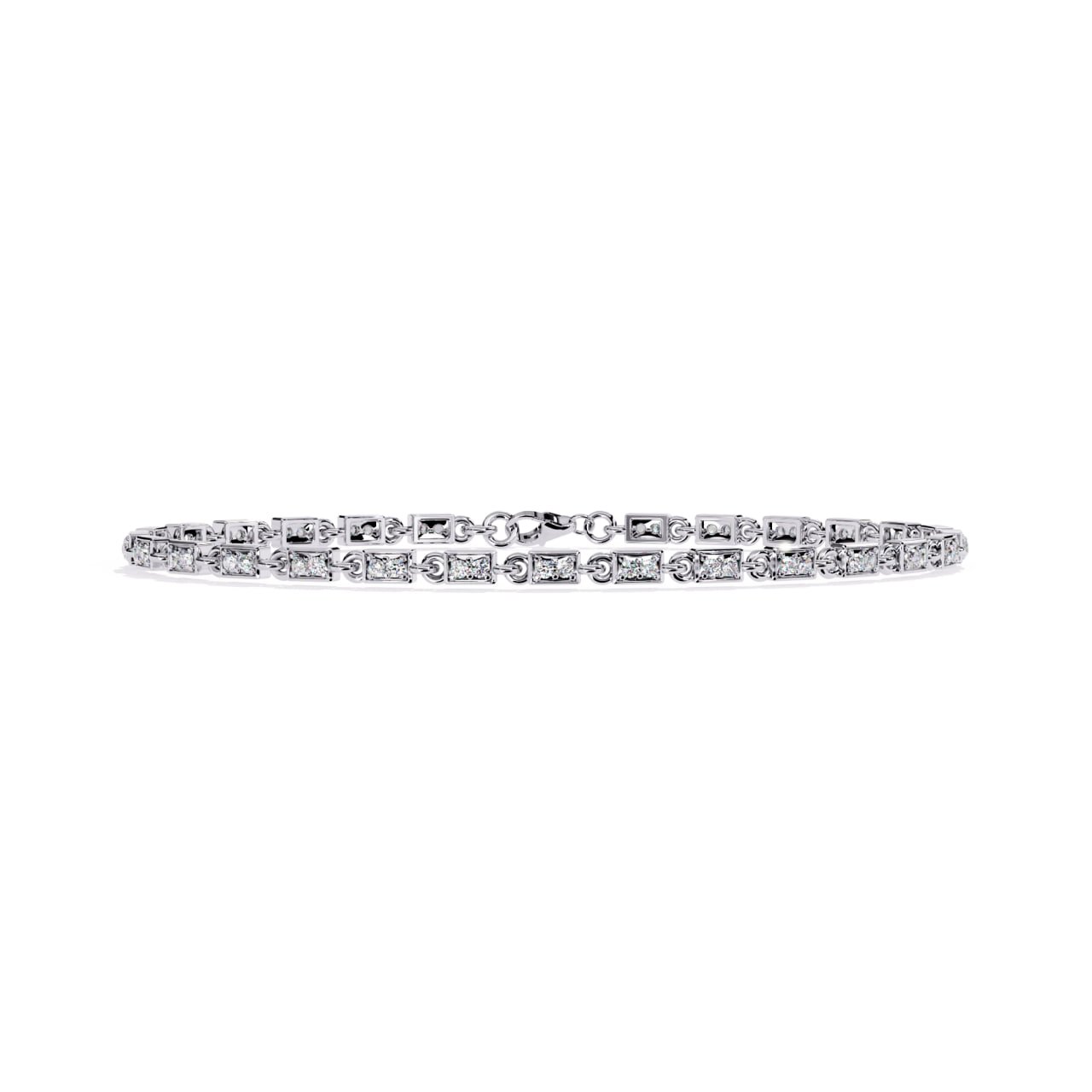 SKU : B016The Classic Square-Link Diamond Tennis Bracelet is a timeless fine jewelry essential crafted for everyday elegance and lasting brilliance. Featuring a continuous row of square-shaped gold links, each adorned with a precisely set round diamond, this bracelet delivers a refined balance of structure and sparkle. Its flexible link construction ensures a comfortable fit around the wrist, while the secure lobster clasp provides confidence for daily wear. Designed with understated luxury in mind, this bracelet transitions effortlessly from casual sophistication to evening elegance.