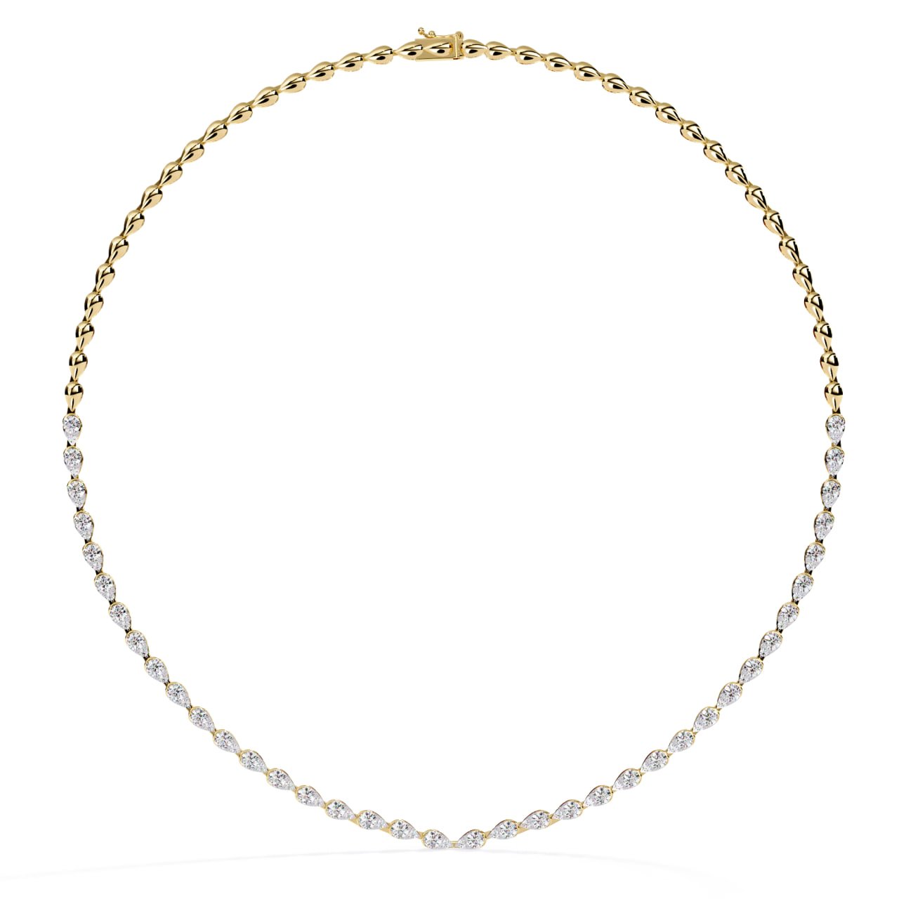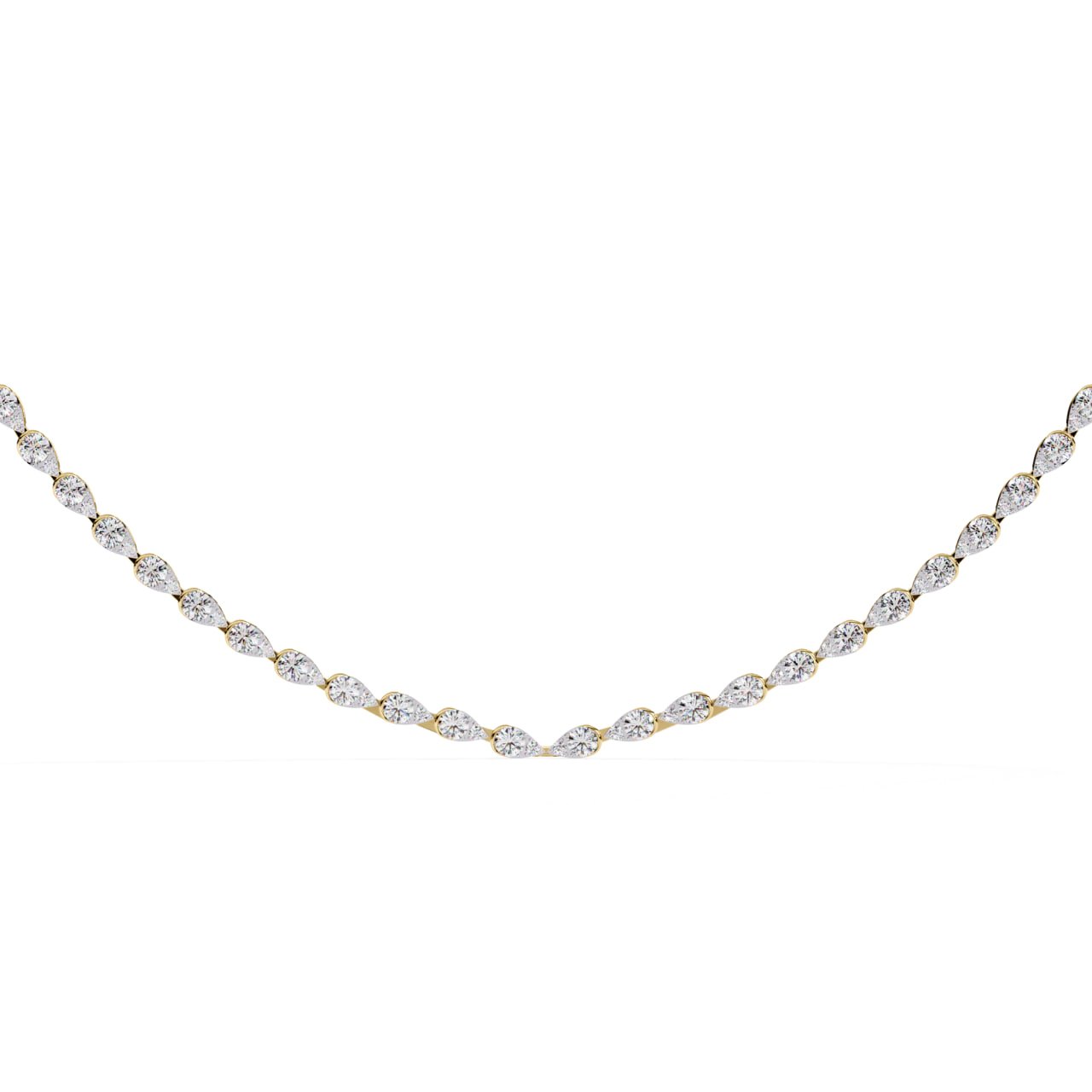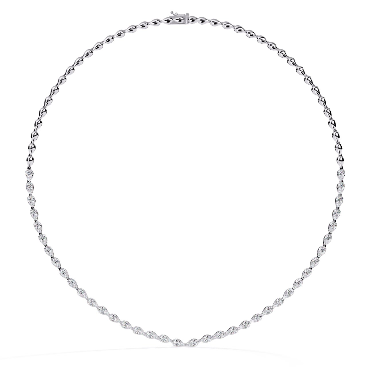 SKU : N019This Diamond Leaf Link Station Necklace is a refined blend of contemporary design and timeless elegance. The necklace features a graceful sequence of round brilliant diamonds set along the front curve, seamlessly transitioning into sculpted leaf-inspired gold links that add texture and visual interest. Designed to sit beautifully along the neckline, the necklace offers a perfect balance of sparkle and metal artistry. The smooth clasp closure ensures a secure and comfortable fit, making this piece ideal for both daily luxury and elegant evening wear.