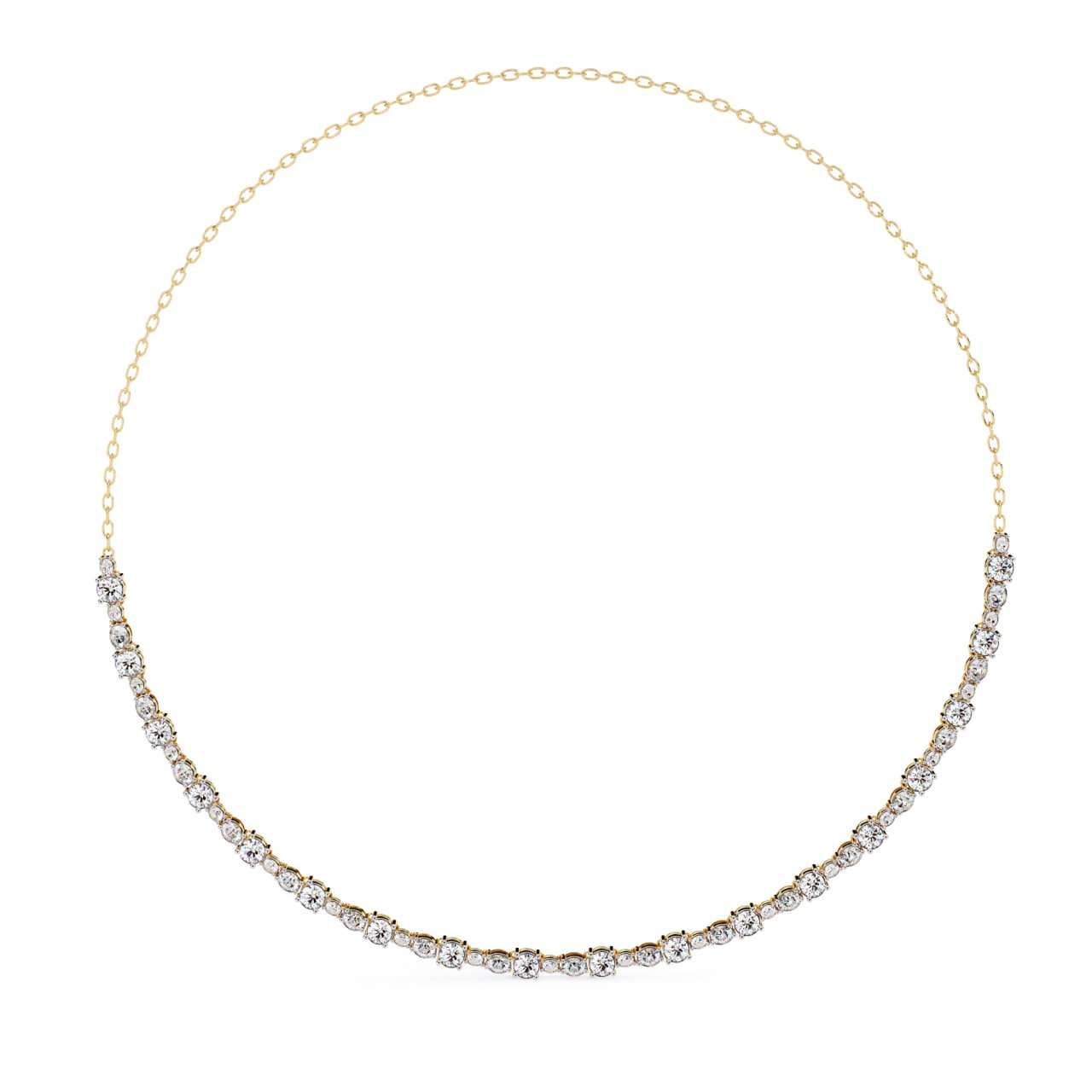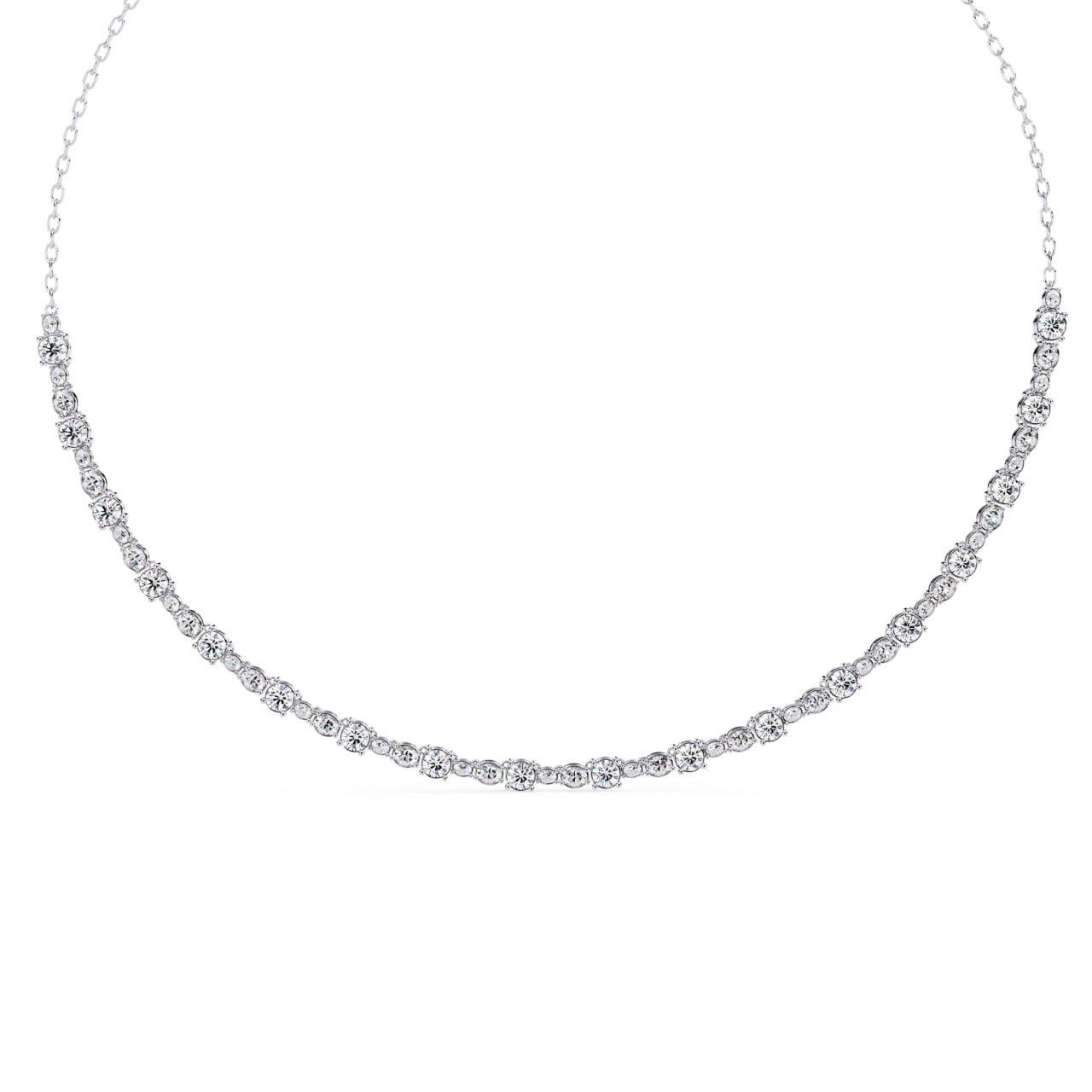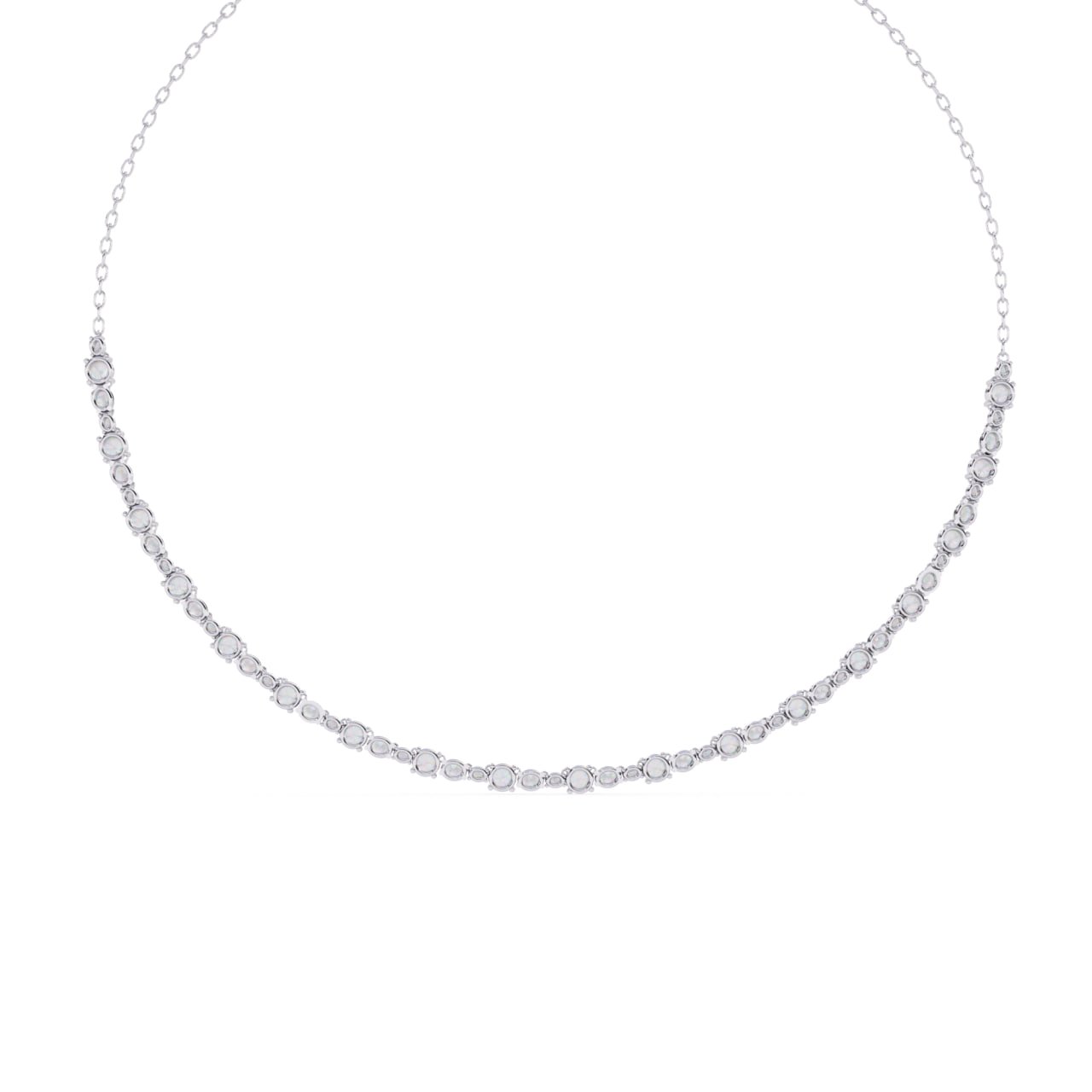 SKU : NK006Gracefully designed for timeless elegance, this Diamond Line Necklace showcases a continuous row of precisely set round diamonds that flow smoothly along the neckline. Crafted with fine craftsmanship, the necklace features evenly spaced diamond stations secured in a refined bezel-style setting, creating a delicate yet luxurious appearance. The minimalist design makes it perfect for everyday sophistication as well as special occasions. Lightweight, comfortable, and versatile, this necklace can be worn solo for a subtle statement or layered with other pieces for a contemporary look.