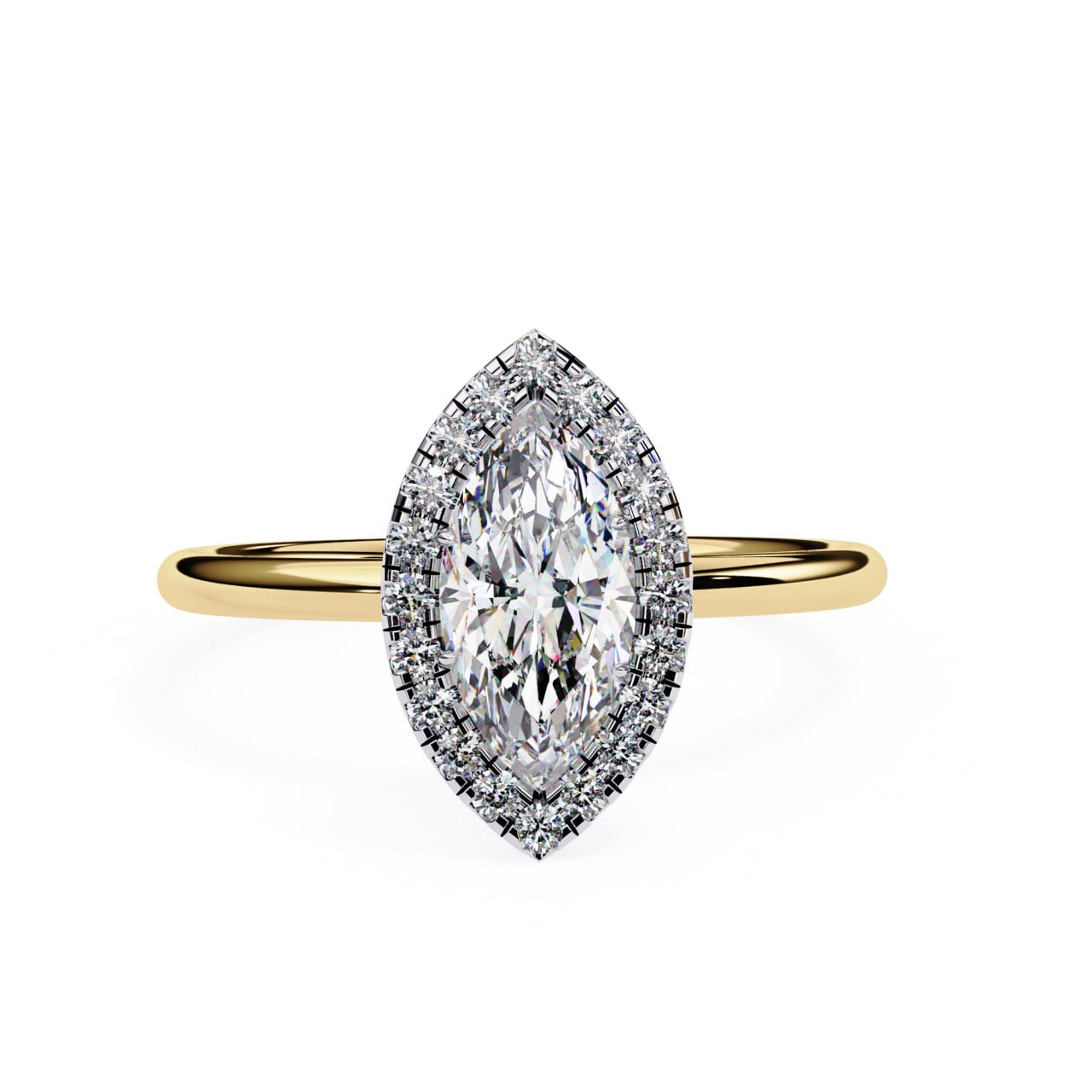 SKU : R117This elegant Marquise Halo Diamond Ring features a striking marquise-shaped center diamond, beautifully framed by a sparkling halo of round brilliant diamonds. Designed to elongate the finger and maximize brilliance, the slim polished band enhances the overall sophistication of the ring. Perfect for engagements, anniversaries, or luxury gifting, this timeless design blends modern elegance with classic charm.