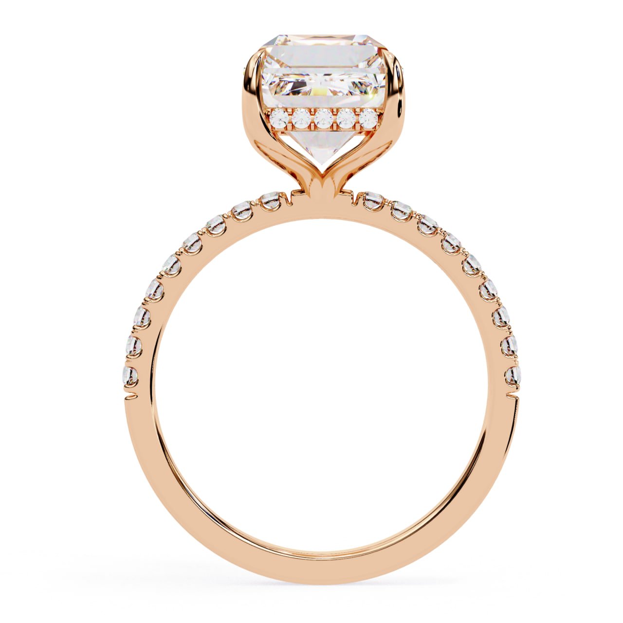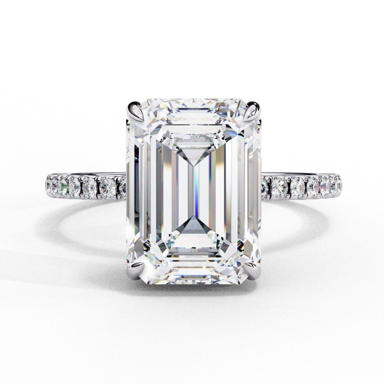 SKU : R-002Make a bold yet timeless statement with this exquisite Emerald Cut Diamond Engagement Ring, designed for those who appreciate refined luxury and architectural brilliance. Featuring a striking emerald-cut center diamond, the clean lines and step facets create a captivating hall-of-light effect that exudes sophistication. The center stone is securely held in a graceful four-prong setting and enhanced by a subtle hidden halo beneath, adding brilliance from every angle. The band is adorned with round pavé-set diamonds, delivering continuous sparkle while maintaining a sleek, modern silhouette. Expertly crafted in high-polish gold, this ring balances strength, comfort, and elegance—making it a perfect symbol of everlasting love.