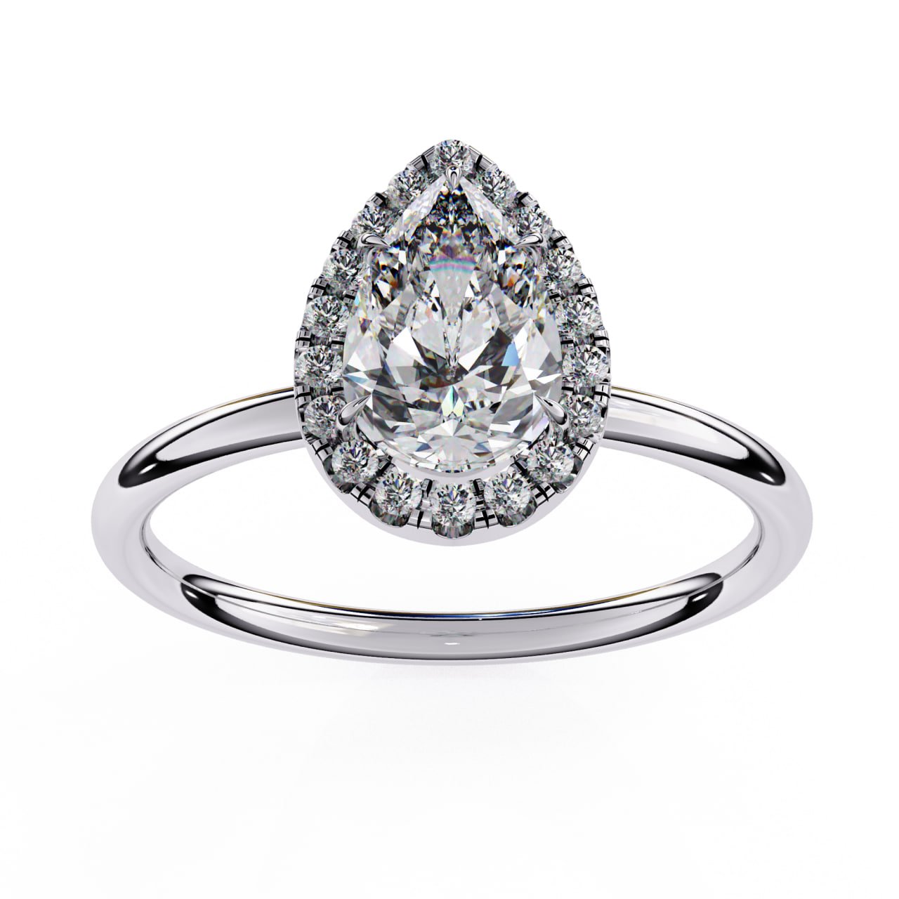 SKU : R119This elegant Pear Halo Diamond Ring features a stunning pear-shaped center diamond surrounded by a brilliant halo of round diamonds. The halo enhances sparkle and creates a graceful, elongated silhouette, while the slim polished band ensures a refined and timeless look. Perfect for engagements, anniversaries, or luxury gifting, this ring blends classic beauty with modern elegance.