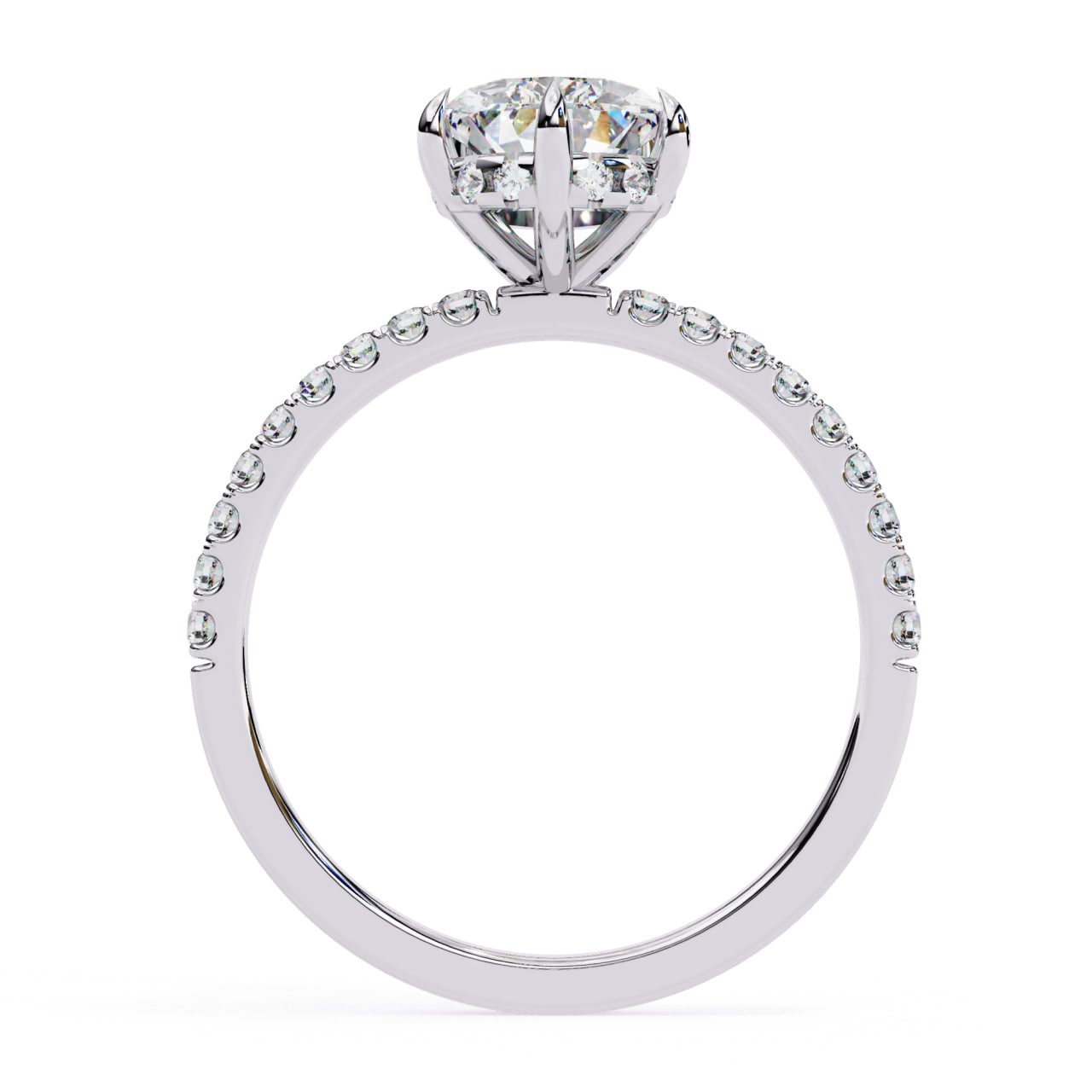 - Setting Type: Prong set center (typically 4-6 prongs for secure yet minimal obstruction); micro/mini pavé set side diamonds on the band