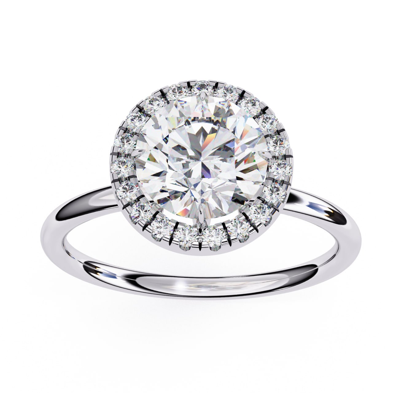 SKU : R115This elegant round halo diamond ring features a brilliant round-cut center diamond encircled by a sparkling halo of meticulously set round diamonds. The sleek, polished band enhances the brilliance of the centerpiece, while the halo setting adds extra fire and presence. A timeless and sophisticated design, perfect for engagements, anniversaries, or special milestones.