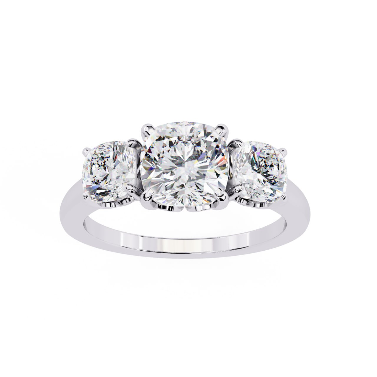 Three-Stone Cushion & Round Diamond Engagement Ring