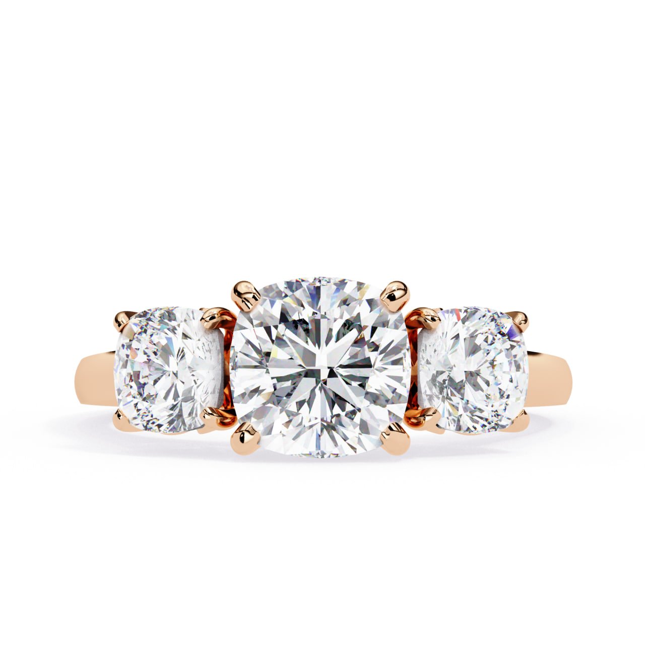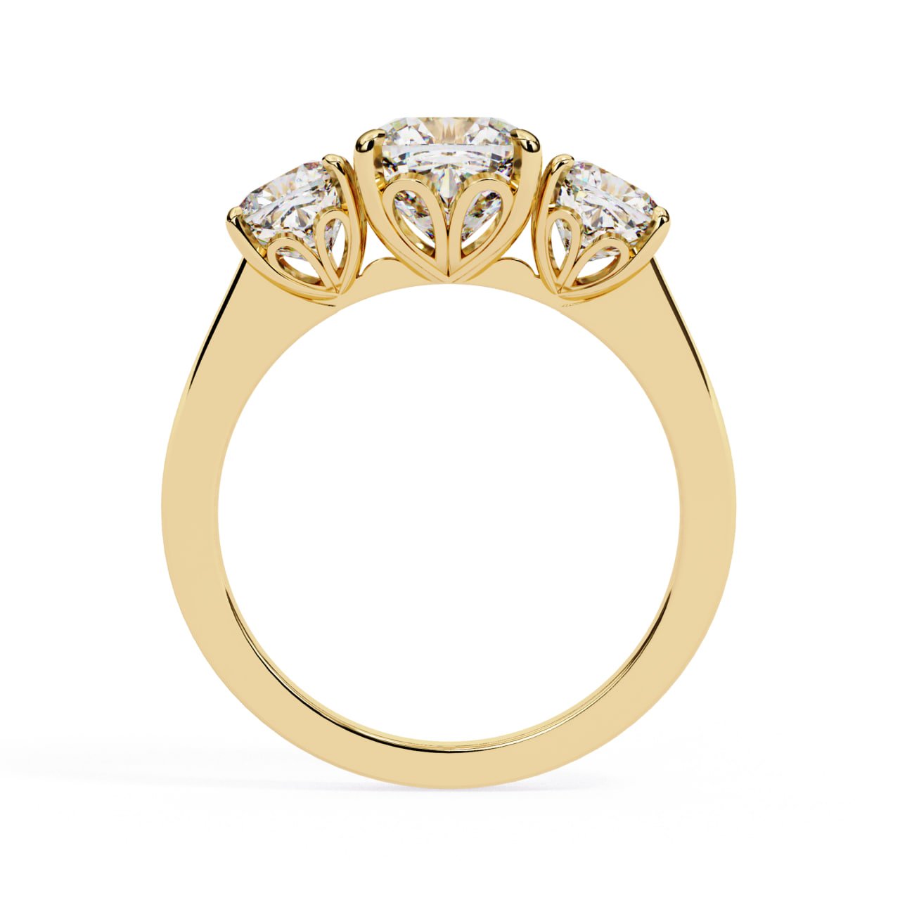SKU : R176This elegant three-stone diamond ring features a timeless design that symbolizes past, present, and future. The centerpiece is a brilliant cushion-cut diamond, beautifully complemented by two matching cushion-cut side diamonds. Set in a classic yellow gold band with secure prong settings, this ring offers exceptional brilliance, balance, and sophistication. Perfect for engagements, anniversaries, or milestone celebrations, it blends luxury with enduring style.